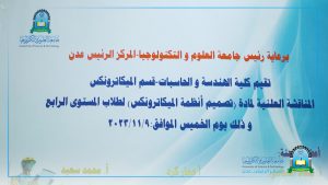 اخبار المناقشة العلنية لمشاريع مقرر تصميم أنظمة الميكاترونكس أقام قسم الميكاترونكس في كلية الهندسة والحاسبات، يوم الخميس الموافق 9/ نوفمبر/ 2023م المناقشة العلنية لمشاريع مقرر (تصميم أنظمة الميكاترونكس)، اطلع على المزيد