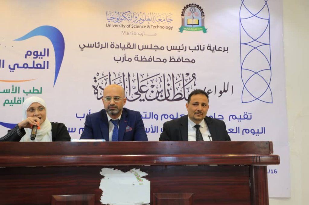 أقام فرع جامعة العلوم والتكنولوجيا بمحافظة مأرب، اليوم العلمي الأول لطب الأسنان في إقليم سبأ، وذلك بمشاركة نخبة من الأكاديميين والمتخصصين وطلاب وطالبات كلية طب الأسنان في الجامعة ويستمر على مدى ثلاثة أيام.