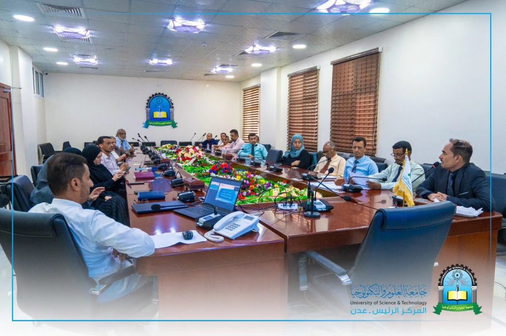 Hasil Laporan Kinerja Akademik Tahun Akademik 2023-2024 Universitas Sains dan Teknologi - Pusat Utama Aden ditinjau dan diumumkan pada Rabu, 9/4/2024, di hadapan Pj Rektor Universitas, Prof . Abdul-Ghani Hamid Ahmed, dan Asisten Presiden Universitas Bidang Akademik, Dr. Muammar Al-Qutaybi, dan Dekan Dekan Pengembangan dan Penjaminan Mutu, Dr. Mahmoud Al-Rumayma, dekan perguruan tinggi, dan kepala departemen ilmiah.