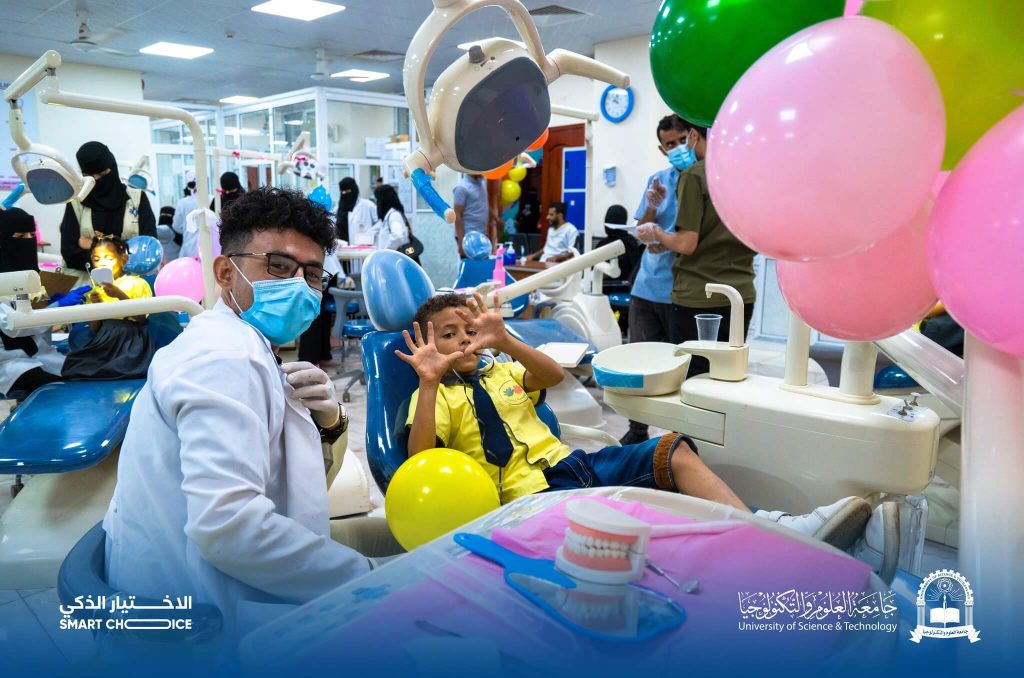 Universitas Sains dan Teknologi - Pusat Utama Aden, melalui Fakultas Kedokteran dan Ilmu Kesehatan - Departemen Kedokteran dan Bedah Mulut dan Gigi, menerima sejumlah anak dari Yayasan Ramoz untuk Tunarungu dan Bisu, di klinik gigi universitas.